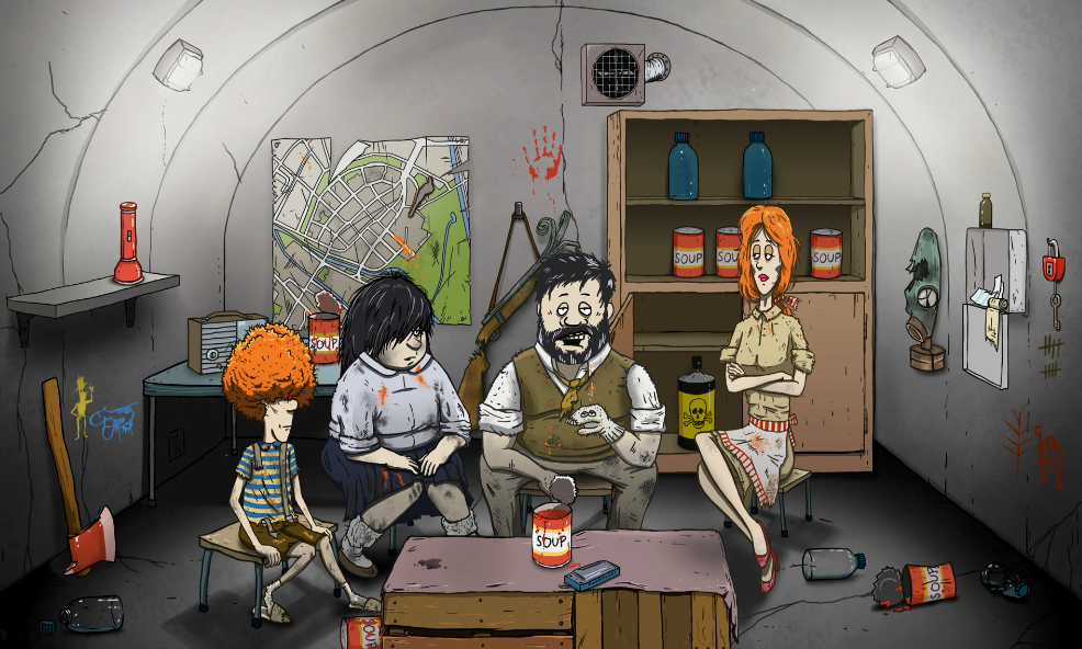 游戏背景设定在一个被核战争摧毁的世界中,玩家扮演的是一家人的父亲,在核弹警报响起的60秒内,迅速冲入家中,收集必要的物资、食物、水、药品、工具以及家庭成员,随后躲进地下室,开始一段漫长的生存之旅。