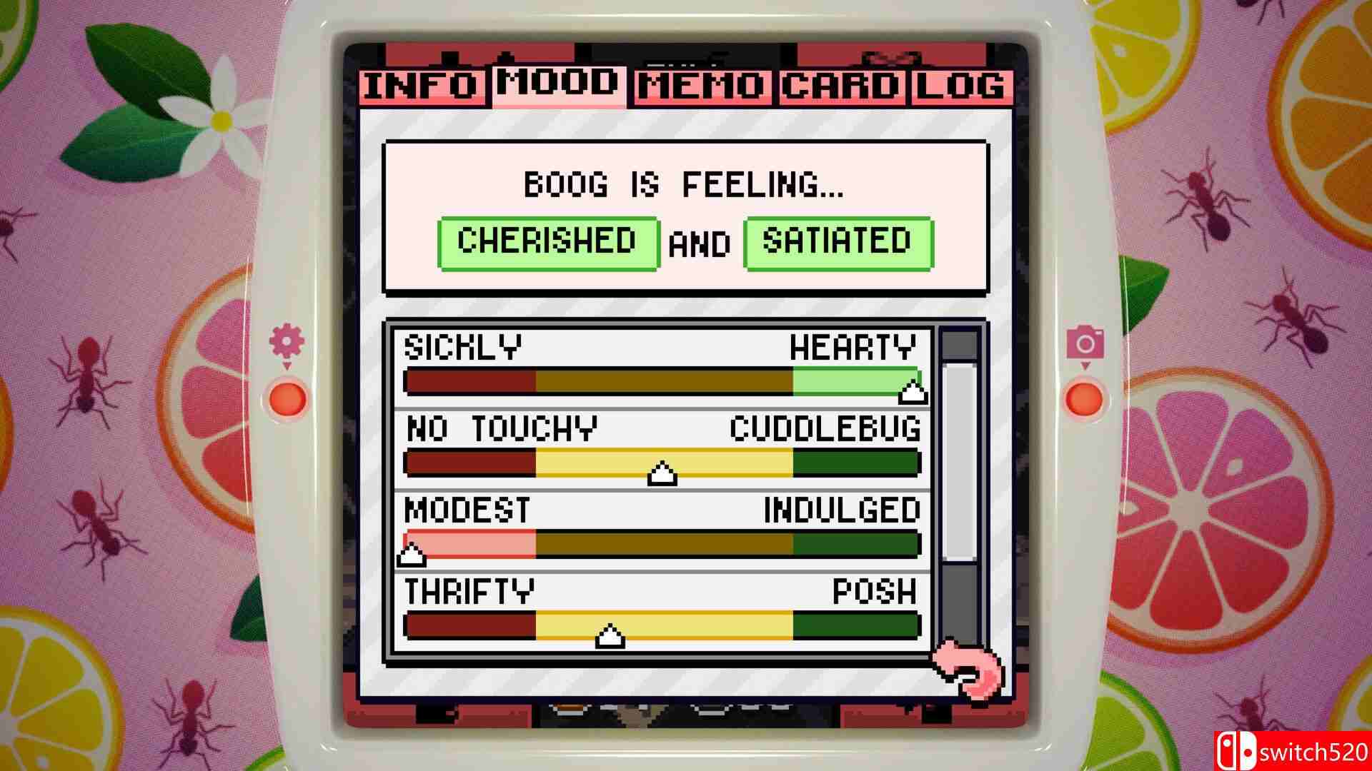 《虫虫口袋》是一款模拟经营类(SIM)游戏,一款汇聚陆地、天空和海洋昆虫的虚拟宠物游戏!你将扮演一名住在小屋里从事研究的科学家,陪伴你的是各色小昆虫和你的一名笔友。通过爱抚、迷你游戏、食物和装扮为小昆虫们营造一个快乐的世界。饲养它们并将它们释放,帮助遭受毁灭性火灾打击的虫虫山脉恢复生机。switch520